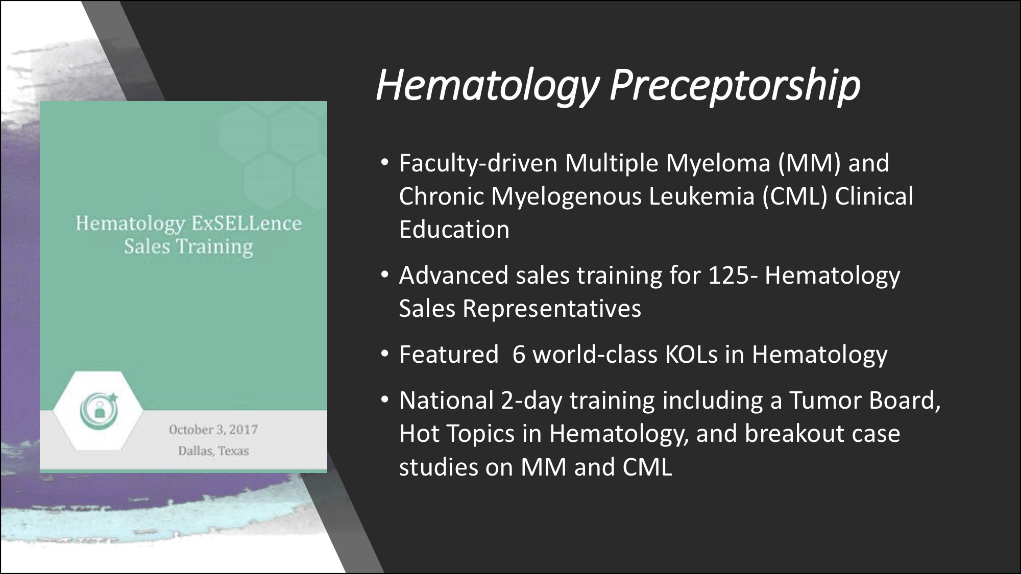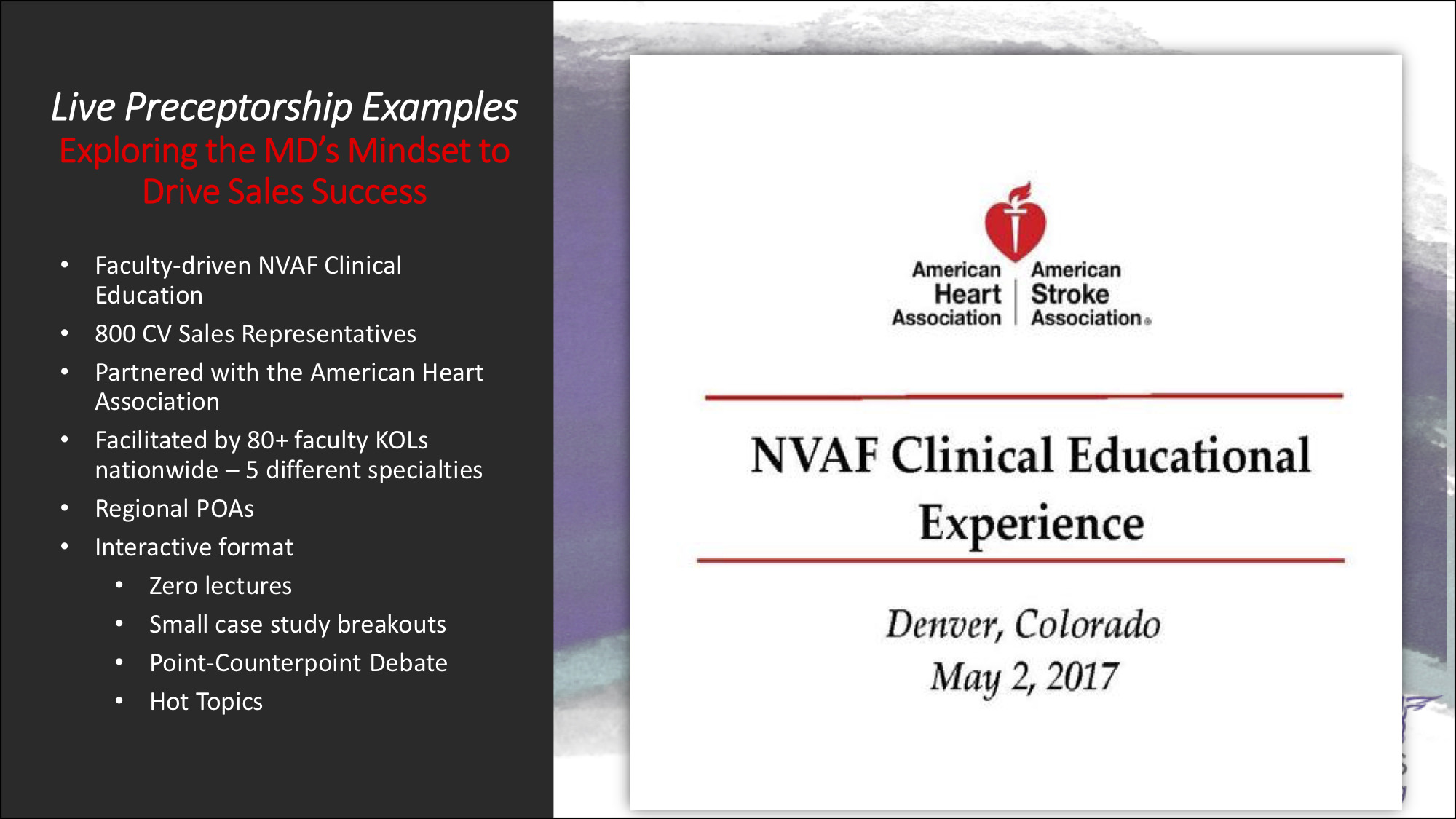 Whether your learners are hearing directly from a real patient as they explore his heart failure journey, walking in the shoes of a physician as a “virtual fellow” and participating in the diagnosis and treatment of a disease, or observing how to incorporate a new strategy into their job as they view an interactive sales call, HCI works with clients to effectively use this powerful tool of virtual or video-based intelligence to engage, support, and drive performance in the field.